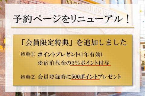 備考 | JR別府駅前 徒歩30秒 /別府トキハ前バス停(高速バス乗降所)徒歩7分 チェックイン 16:00~ チェックアウト ~10:00 |